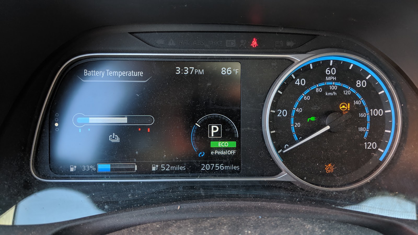 Ok, so we have LEAF Spy so we already know the speed won't be what we are expecting. But others will expect nothing as the temperature gauge will be at 6 pips, ticks, bars (or whatever) which is dead center on the scale.